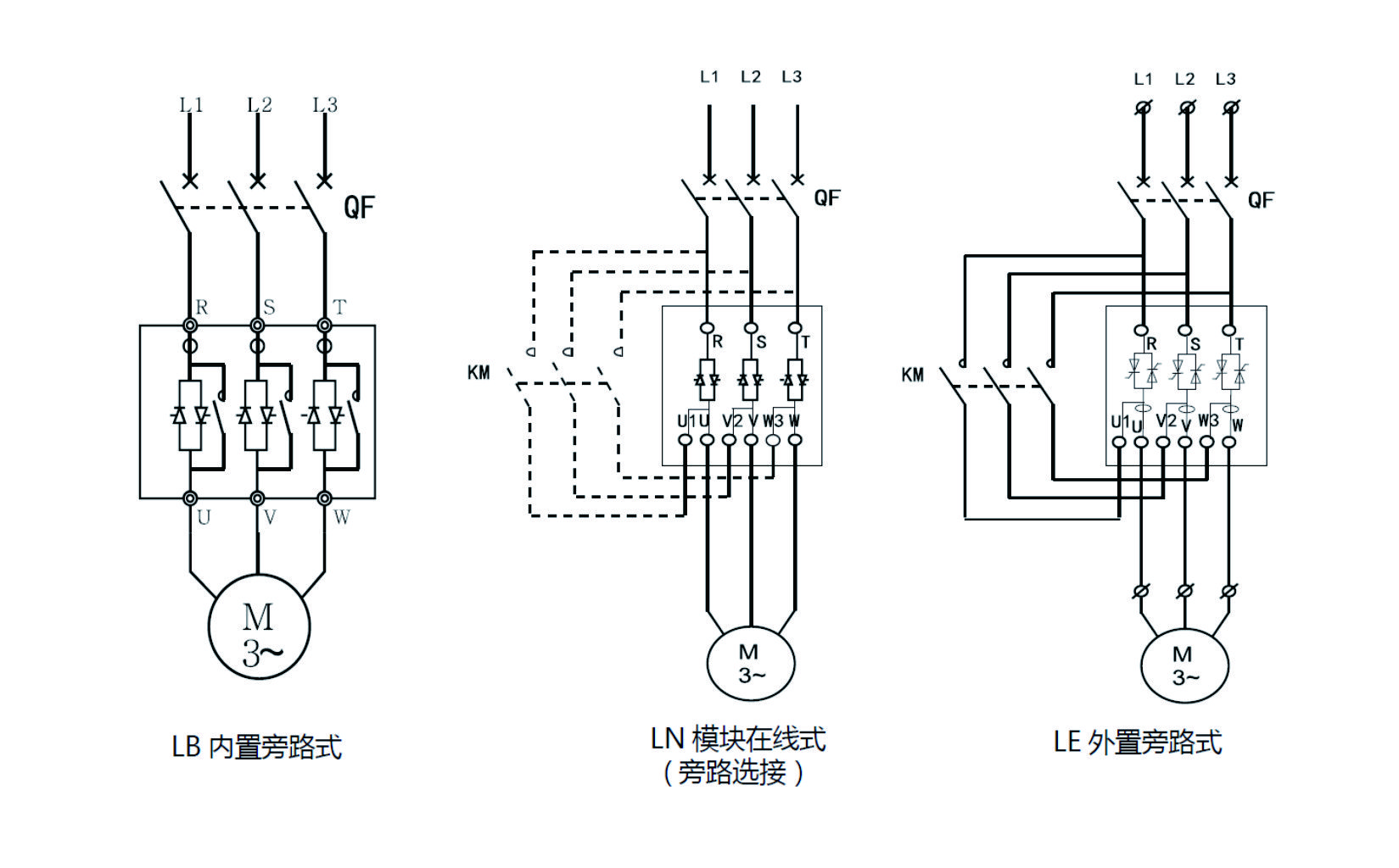 (其中SJR3-LN系列为旁路选接,配置有旁路连接铜排,使用旁路可以有效减轻模块运行功耗,延长模块使用寿命)